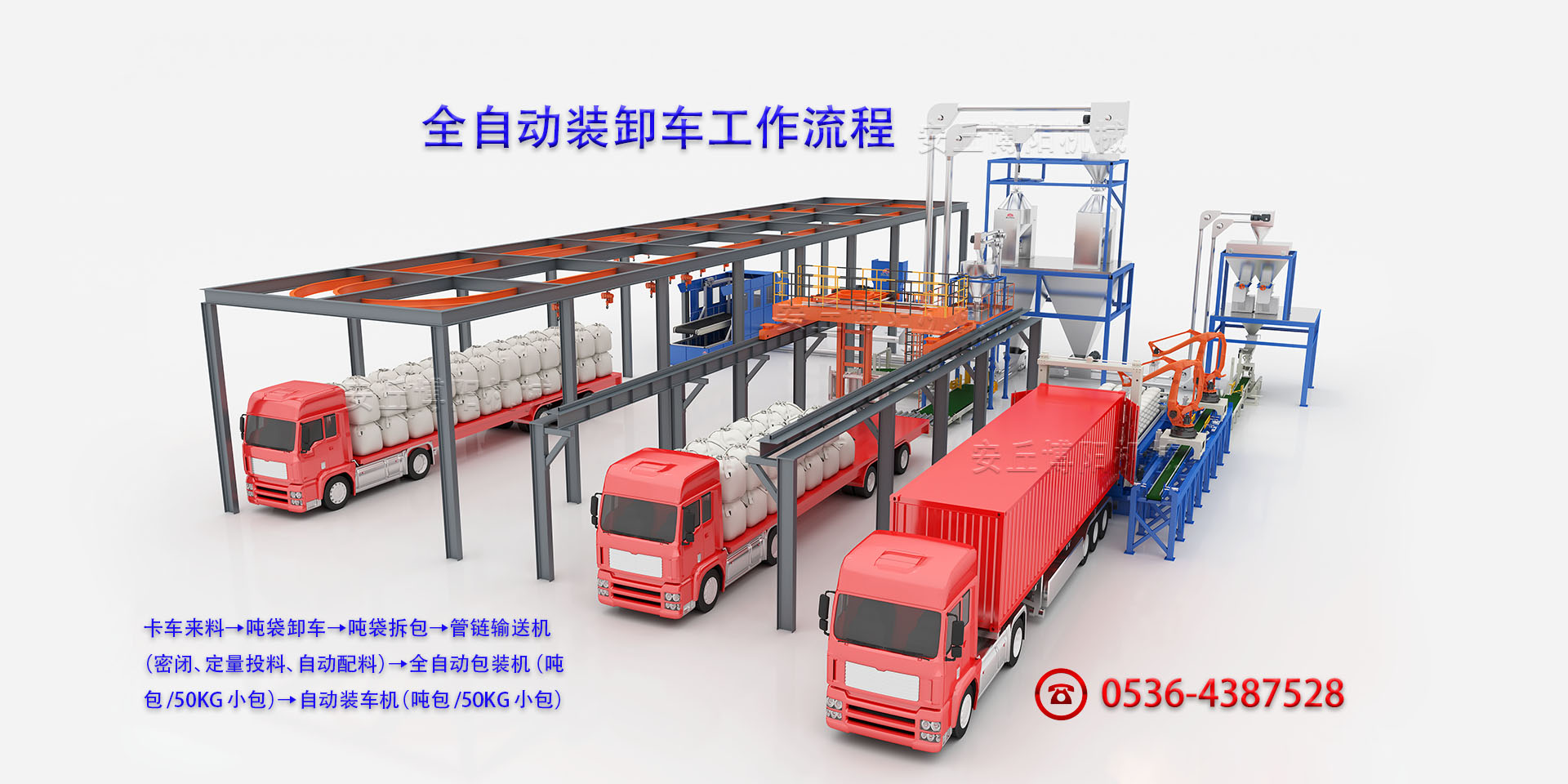噸袋拆包機+自動拆垛拆包機+管鏈輸送機+反應釜定量投料